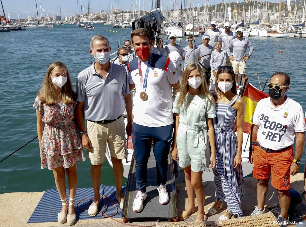 Het Spaanse koninklijk gezin is zaterdag op Mallorca aanwezig geweest bij de huldiging van zeiler Joan Cardona, die afgelopen week brons won in de Finn-klasse op de Olympische Spelen in Tokio.