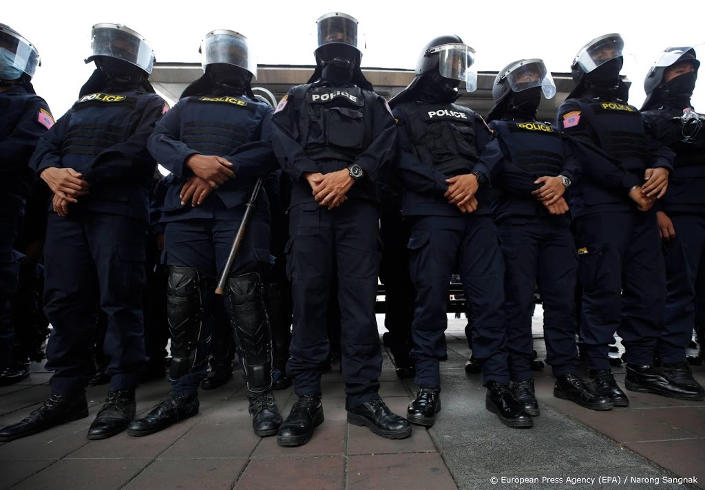 De Thaise politie heeft zaterdag met groot vertoon van macht hardhandig ingegrepen bij een demonstratie tegen de wet op majesteitsschennis. Demonstranten die bij het verkeersknooppunt Victory Monument in Bangkok spandoeken wilden ontvouwen werden meteen aangepakt en afgevoerd.