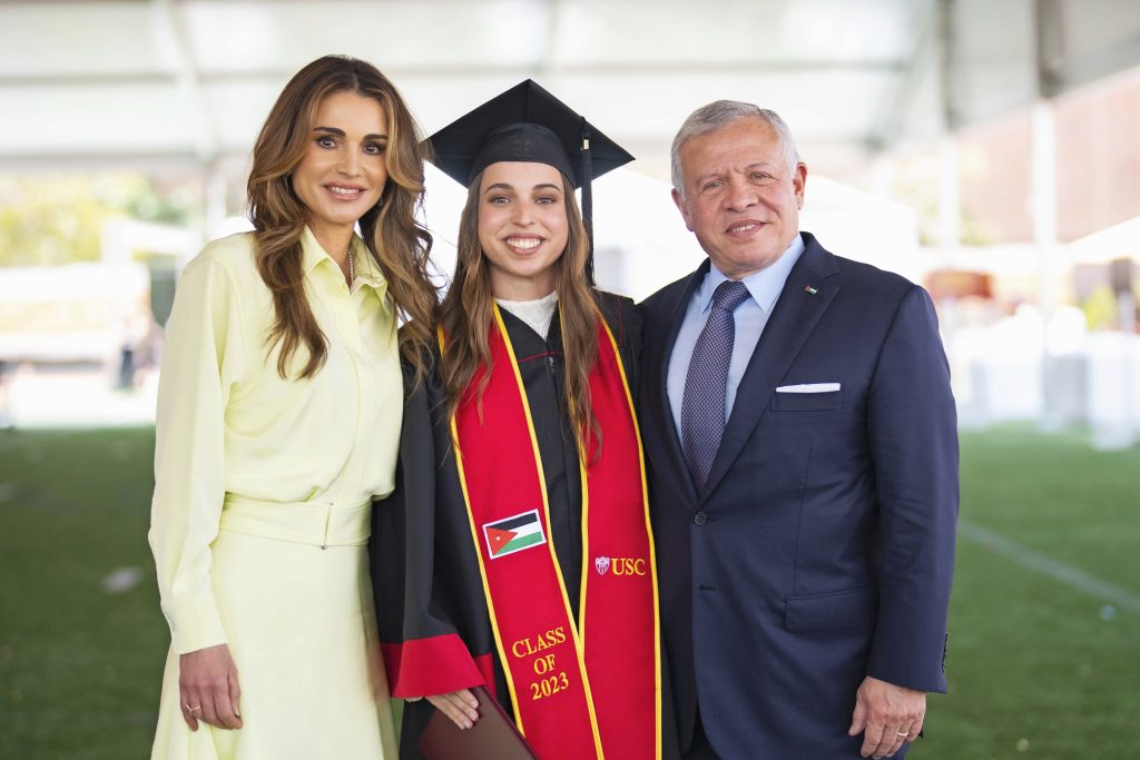 Koningin Rania beleeft een topjaar met haar kinderen. Haar twee oudsten trouwden en ze woonde als trotse moeder de diploma-uitreikingen bij van haar twee jongsten. Prins Hashem (18) haalde dit voorjaar zijn middelbareschooldiploma op King’s Academy in Madaba, een vooraanstaande kostschool. Kort daarvoor vlogen Rania en koning Abdullah naar de Verenigde Staten om bij de diploma-uitreiking van prinses Salma (22) te zijn. Ze studeerde archeologie aan de University of Southern California. Het is niet de eerste prestatie die de jonge prinses levert: ze volgde al eerder een militaire training aan de Britse Koninklijke Militaire Academie Sandhurst en ze is sinds 2020 de eerste vrouwelijke Jordaanse straaljagerpiloot. Wat Salma en haar broer nu gaan doen, is nog niet bekendgemaakt. De kans is groot dat Hashem, net als veel familieleden, ervaring in het leger gaat opdoen.
