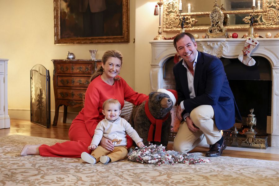 Erfgroothertog Guillaume en zijn vrouw Stéphanie hebben maar liefst een hele serie kerstfoto’s met de wereld gedeeld. Stralend middelpunt is natuurlijk prins Charles.