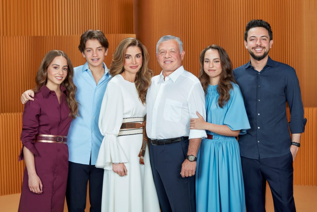 Koning Abdullah en koningin Rania kijken alvast vooruit naar een mooi 2022 met deze nieuwe foto van hun knappe gezin. ‘Mogen draadjes van geluk, hoop en goede gezondheid je nieuwe jaar bij elkaar weven’, zegt Rania met prachtige woorden.