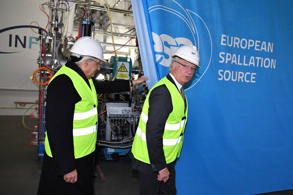 Bij het European Spallation Source, waar een nieuwe deeltjesversneller wordt gebouwd, gaven Carl Gustaf en Mattarella het startsein voor de ingebruikname van een nieuwe machine die ionenbronnen produceert. In Lund worden straks de kleinste deeltjes op aarde onderzocht om meer te weten te komen over hun structuur en functie.