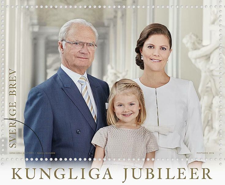 De nieuwe set bestaat volgens Zweedse media uit drie zegels. Op één zegel staan Carl Gustaf, Victoria en Estelle, de andere zegels zijn voor de koning en zijn echtgenote koningin Silvia. De set is vanaf 17 maart te koop ter gelegenheid van het veertigjarig huwelijk van Carl Gustaf en Silvia.
