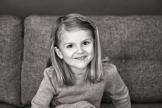 Prinses Estelle van Zweden, de oudste dochter van kroonprinses Victoria en prins Daniel, viert donderdag haar vijfde verjaardag. Traditiegetrouw viert het Zweedse hof dat met het vrijgeven van nieuwe foto’s. De zwart-witbeelden, waarop Estelle poseert op de bank, zijn gemaakt door Anna-Lena Ahlström.
