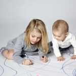 De bijna vijfjarige Estelle vermaakt zich op de foto zichtbaar door de grond te bewerken met ‘artistiek’ gekras met stiften. Haar bijna elf maanden oude broertje, prins Oscar, kijkt ademloos toe. De familiefoto is een stuk braver. Daarop houden kroonprinses Victoria en prins Daniël hun kinderen netjes in bedwang. Oscar is voor de gelegenheid uitgedost in een net wit overhemd.