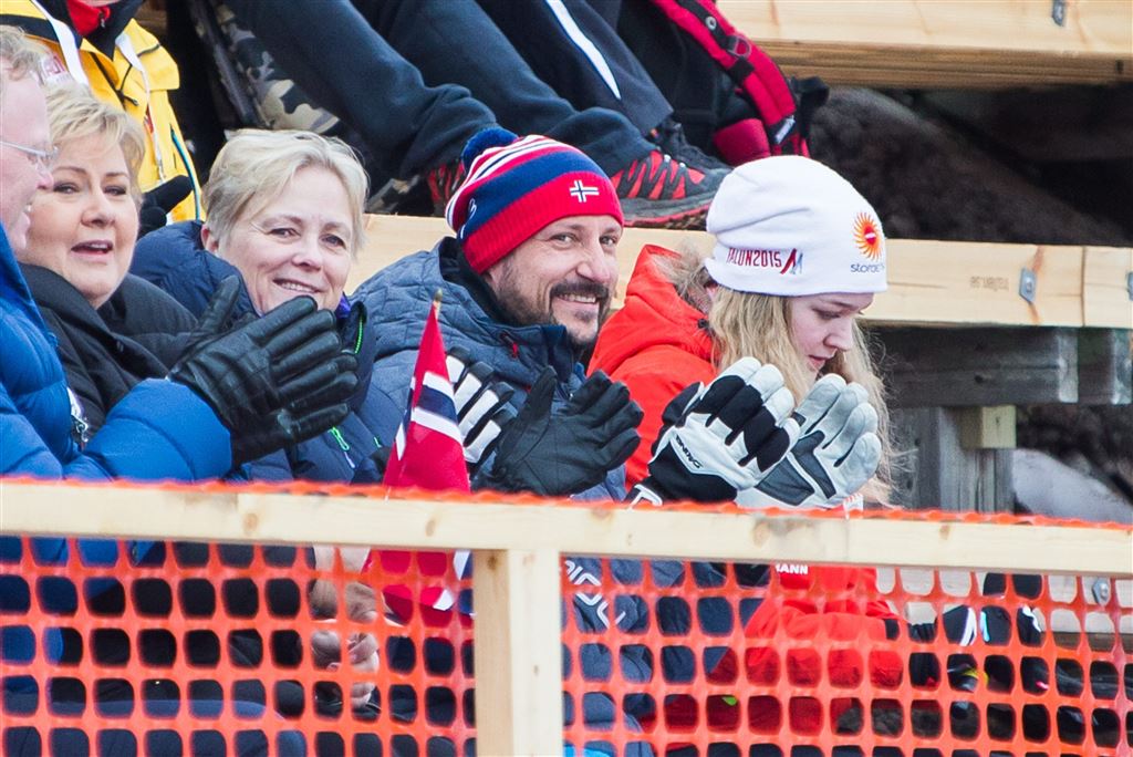 Het wereldkampioenschap leeft ook in de buurlanden van Zweden. Vorig weekeinde maakte de Deense kroonprins Frederik zijn opwachting in Falun en vrijdag meldde ook het Noorse kroonprinselijk paar Haakon en Mette-Marit zich met hun kinderen Ingrid Alexandra en Sverre Magnus. Volgens de Noorse hofkalender was het een eendaags uitstapje, maar zaterdag zat Haakon opnieuw op de tribune.