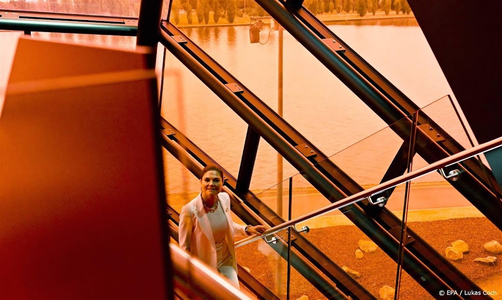 Kroonprinses Victoria heeft een liefdesbeeld onthuld bij het stadhuis van de Zweedse hoofdstad Stockholm. Het beeld is gemaakt door kunstenares Stina Persson. Zij was bij de onthulling aanwezig.