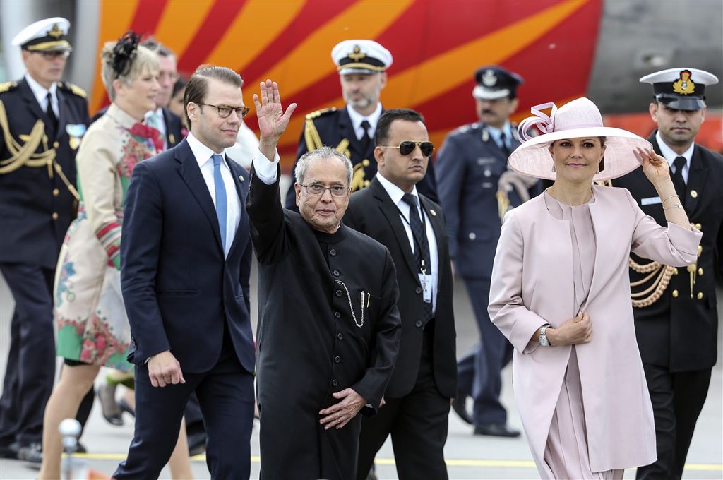STOCKHOLM – De Zweedse kroonprinses Victoria en haar man prins Daniel hebben zondag de president van India ontvangen op het vliegveld van Stockholm. Pranab Mukherjee is op staatsbezoek in Zweden.