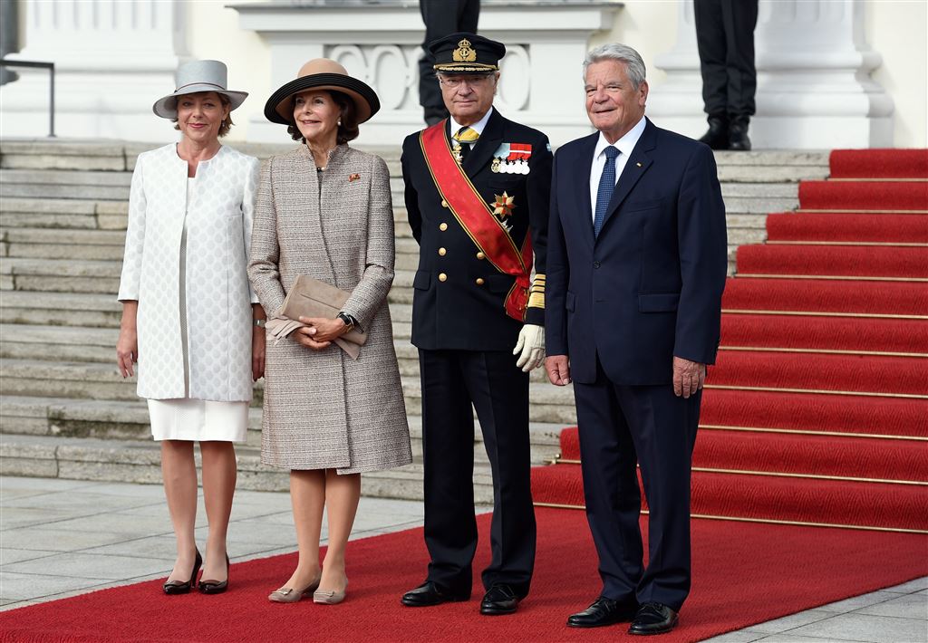 Bij slot Bellevue werden Carl Gustaf en Silvia ontvangen door Gauck en zijn partner. In de ambtswoning van de bondspresident kreeg het Zweedse paar een receptieceremonie. Carl Gustaf en Silvia tekenden het gastenboek van slot Bellevue en namen cadeautjes in ontvangst. Nadien vond een gesprek plaats waarbij ook de Zweedse minister van Buitenlandse Zaken Margot Wallström en de Zweedse ambassadeur Lars Danielsson aanschoven.