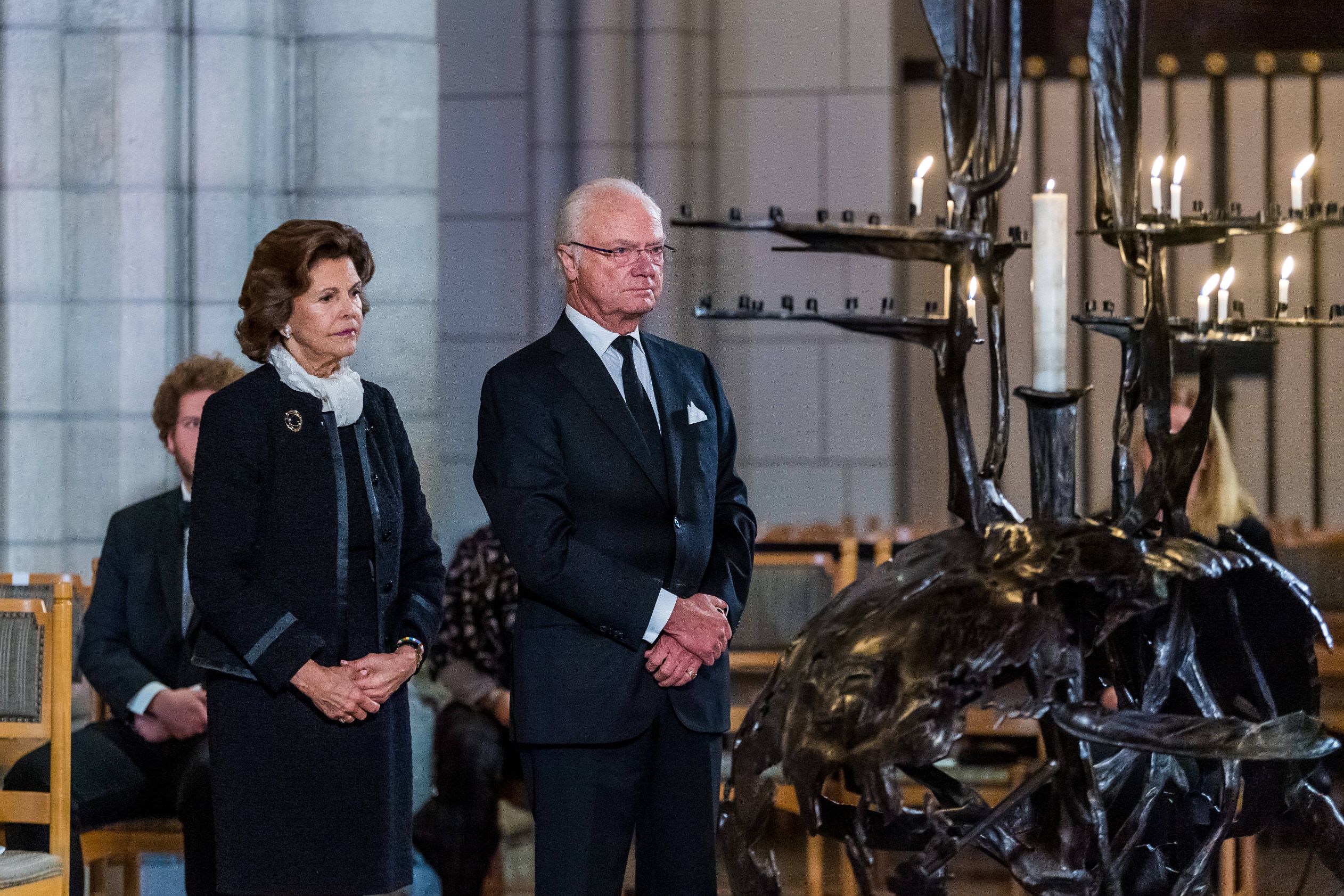 Koning Carl Gustaf en koningin Silvia van Zweden zijn zaterdag in de kathedraal van Uppsala bij de nationale herdenkingsdienst voor met name de slachtoffers van de coronacrisis. De dienst is een initiatief van aartsbisschop Antje Jackelén en vindt plaats aan de vooravond van Allerheiligen en Allerzielen, de tijd van het jaar waarin veel mensen de begraafplaatsen bezoeken om kaarsen aan te steken op graven.