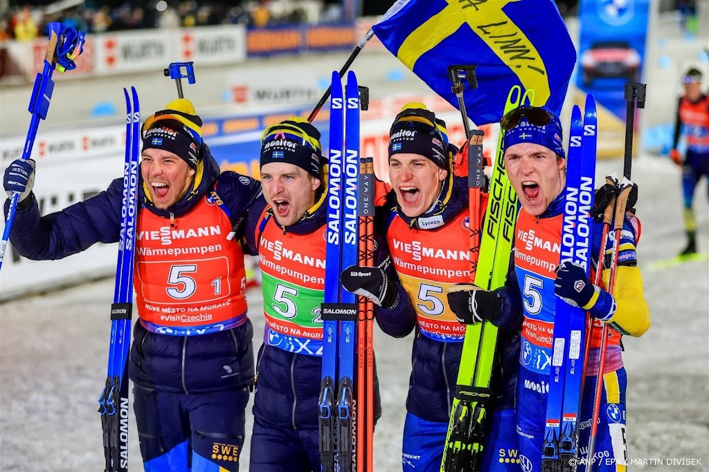 Ook stuurde het paleis namens koning Carl Gustaf en koningin Silvia een felicitatie naar het Zweedse biatlonteam. Viktor Brandt, Jesper Nelin, Martin Ponsiluoma en Sebastian Samuelsson kregen een telegram naar aanleiding van hun overwinning in de mannenestafette op de wereldkampioenschappen biatlon in Tsjechië. Het koningspaar roemt de “sterke teamprestatie” en het “goede schot met de ijskoude finish” van de atleten.