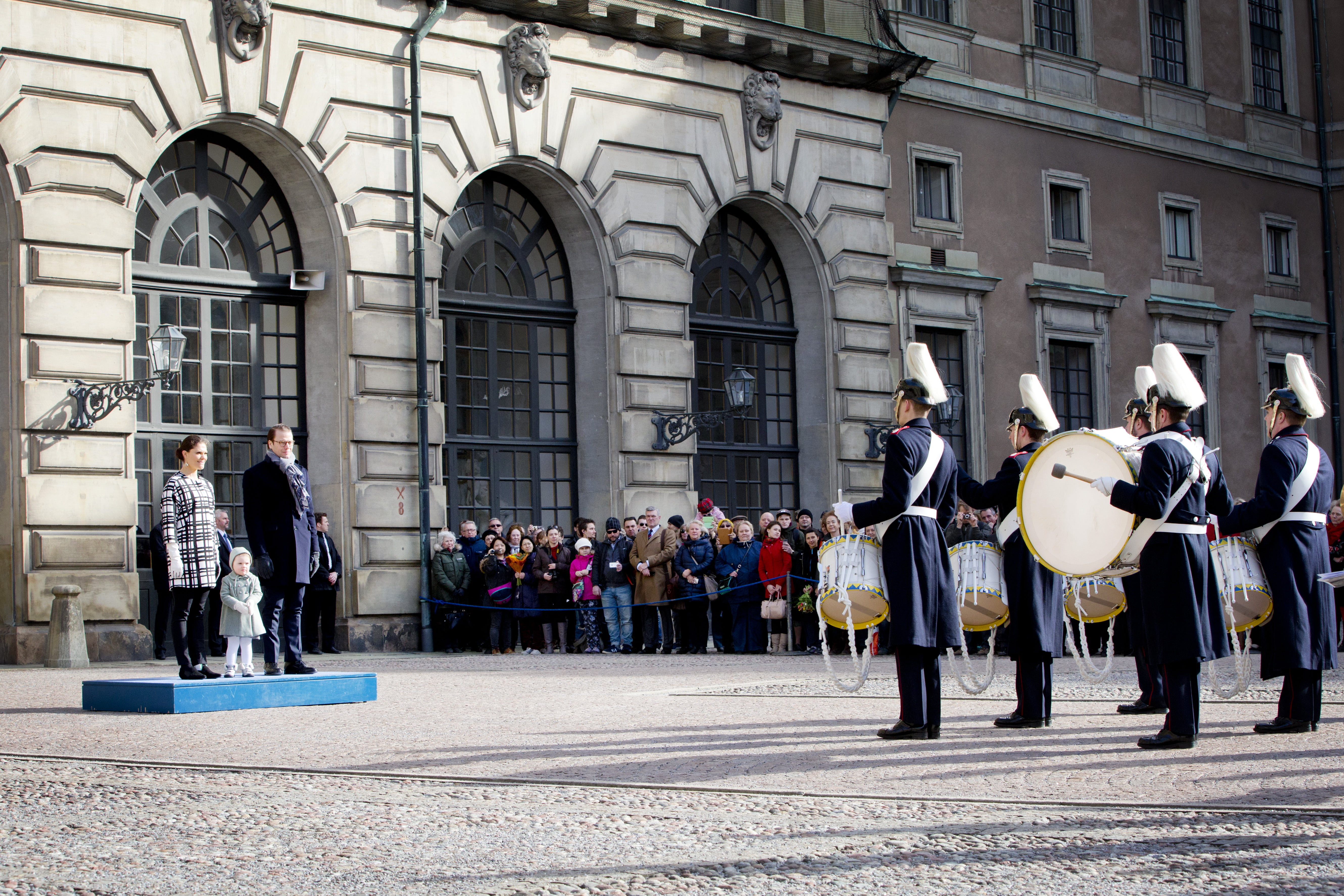 De kroonprinses werd op de binnenplaats van het Koninklijk Paleis van Stockholm toegespeeld door een muziekkorps. Ze werd daarbij vergezeld door haar man prins Daniël en hun kindje, prinses Estelle, die tot groot genoegen van het toegestroomde publiek vrolijk meeklapte- en deinde met de muziek.